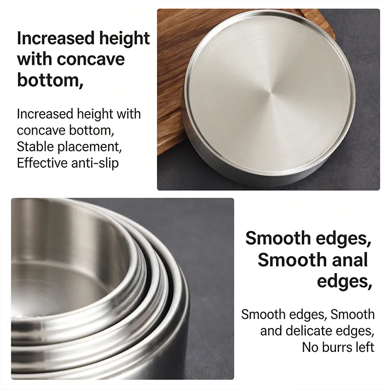 Sleek Brushed Polished Finish: The brushed stainless steel surface resists fingerprints and scratches, maintaining a durable, matte appearance. The reinforced rim ensures stability and easy stacking, while the smooth edges enhance safe handling.