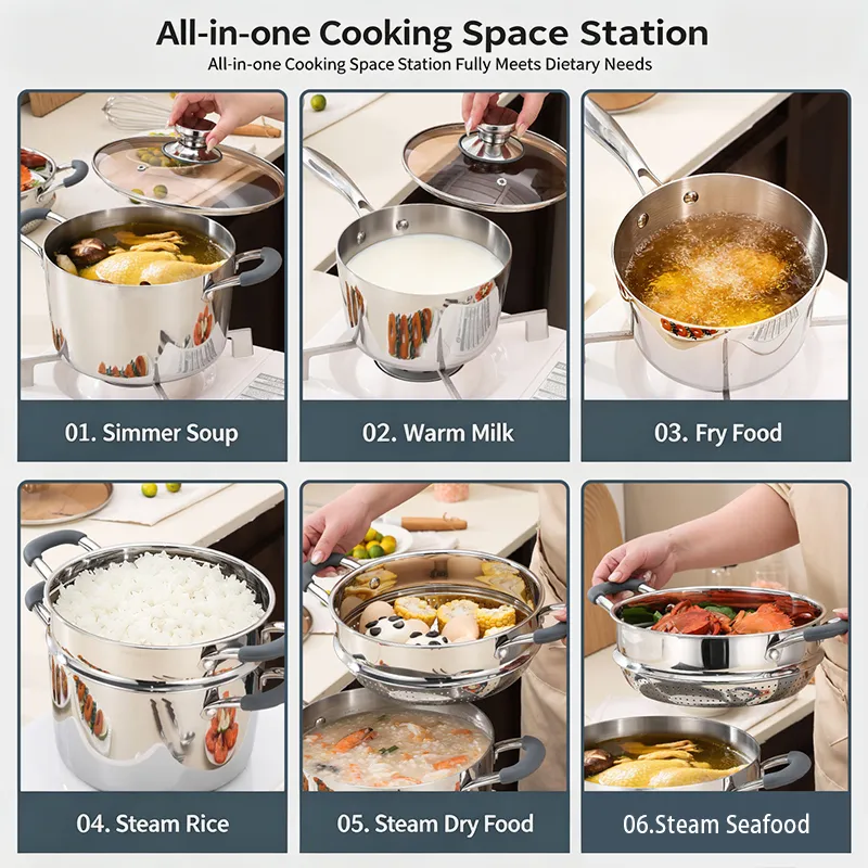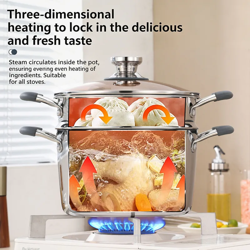Versatile Application Scenarios: Perfect for steaming, boiling, stewing, and simmering. Suitable for home kitchens, restaurants, and catering, combining durability, safety, and multi-functionality for daily use.