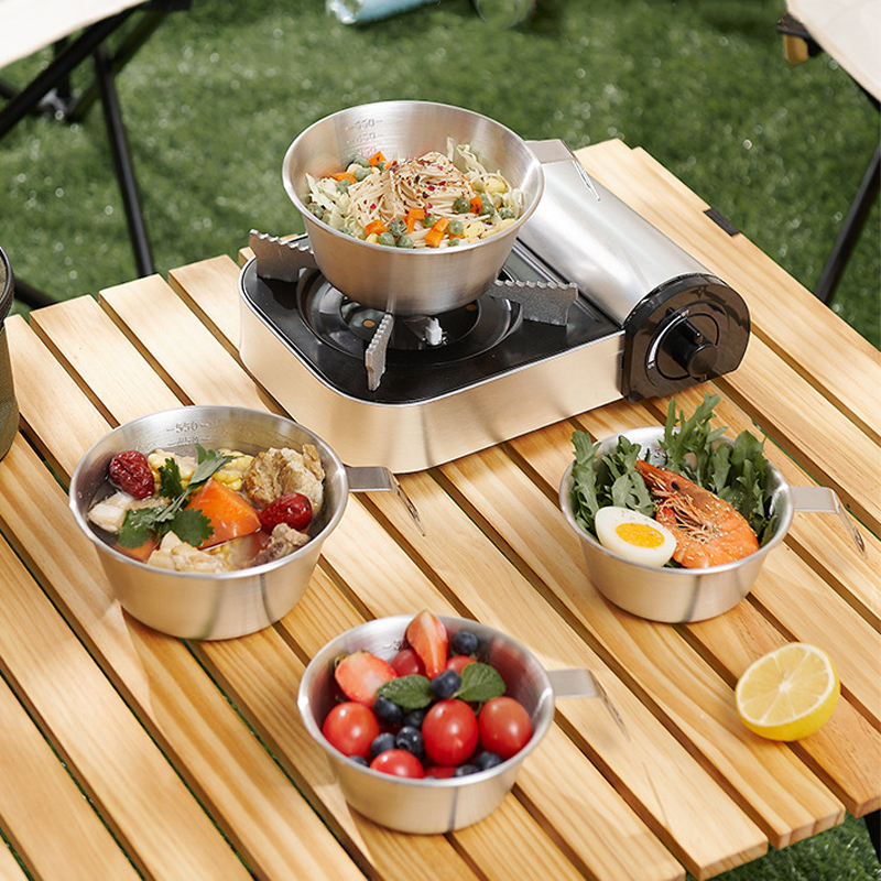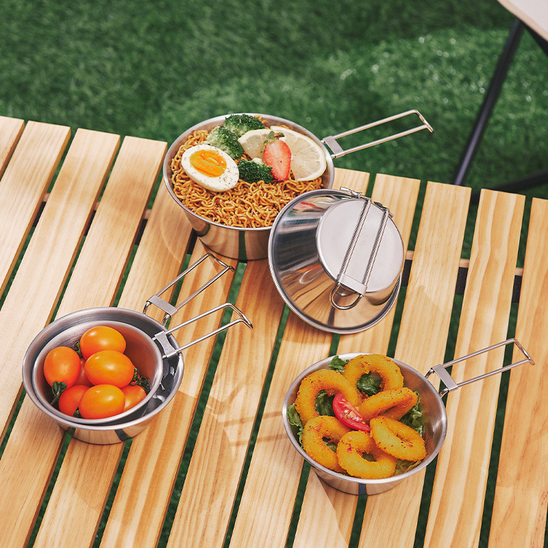 A single stainless steel bowl can be used for eating, cooking, mixing, or food storage, reducing SKU load and improving versatility. This makes it attractive for brands selling multi-purpose camping bowls and complete outdoor cookware sets.